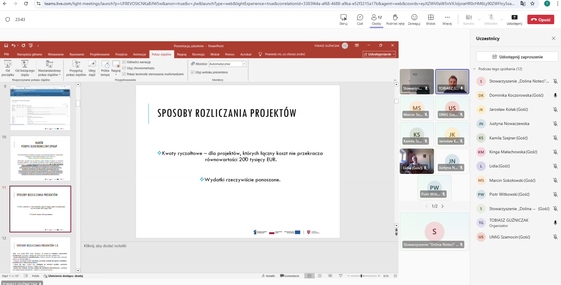 Stowarzyszenie udostępniło szkolenie w swojej siedzibie i część członków Rady skorzystała z zaproszenia do biura LGD, a pozostali uczestniczyli online.