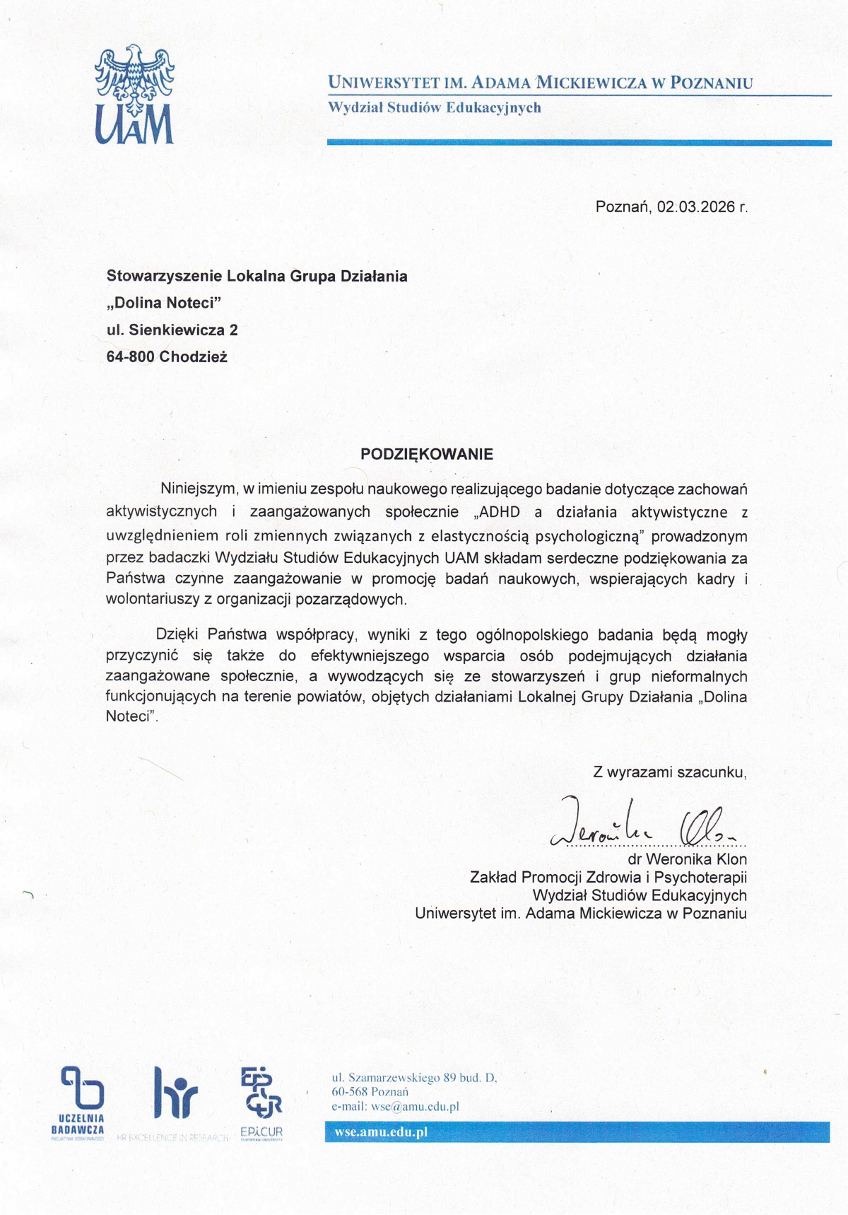 podziękowanie